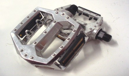 Πεντάλ αλουμινίου bmx- freestyle. Με μεγαλύτερη επιφάνεια και ακίδες για να γαντζώνει η σόλα του παπουτσιού. Το σπείρωμά τους είναι 1/2″”